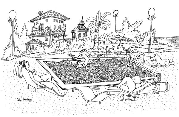 علي فرزات- رسام كاريكاتير سوري: الكاريكاتير بيعني لي أشياء كثيرة طبعا ما هو فقط على المستوى السياسي لأنه أي حالة سياسية ترتبط بحالة اجتماعية وبالتالي بحالة اقتصادية وبالتالي بحالة إنسانية، لذلك رسوماتي تكاد لا تستطيع أن تميز هل هي رسوم سياسية أم اجتماعية أم اقتصادية أم إنسانية، كلها مع بعض.